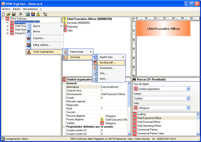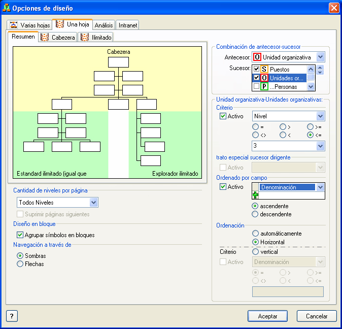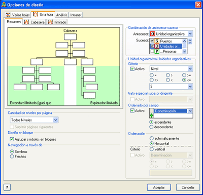 En la logica estructural de la representación están determinado los detalles y niveles del organigrama. Por ejemplo si desea visualizar solamente unidades organizativas o además las personas adjudicadas.